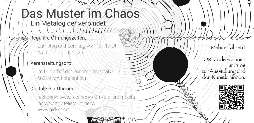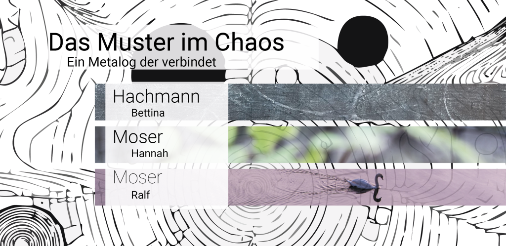 Drei künstlerische Positionen – vermittelt durch unterschiedliche Kommunikationsmedien – treten in einen offenen Metalog über Ordnung und Unordnung, kollektive Prägung und individuelle Entscheidungsfreiheit sowie über Originalität und Verfielfältigung. Die ausgestellten Werke machen im Erkenntnisprozess des Metalogs Muster im Chaos sichtbar. In verschiedenen Medien und Herangehensweisen laden die Arbeiten von Bettina Hachmann, Hannah S. Moser und Ralf Jochen Moser zur Reflexion über innere Bewegungen, gesellschaftliche Strukturen und persönliche Lebensgestaltung ein.