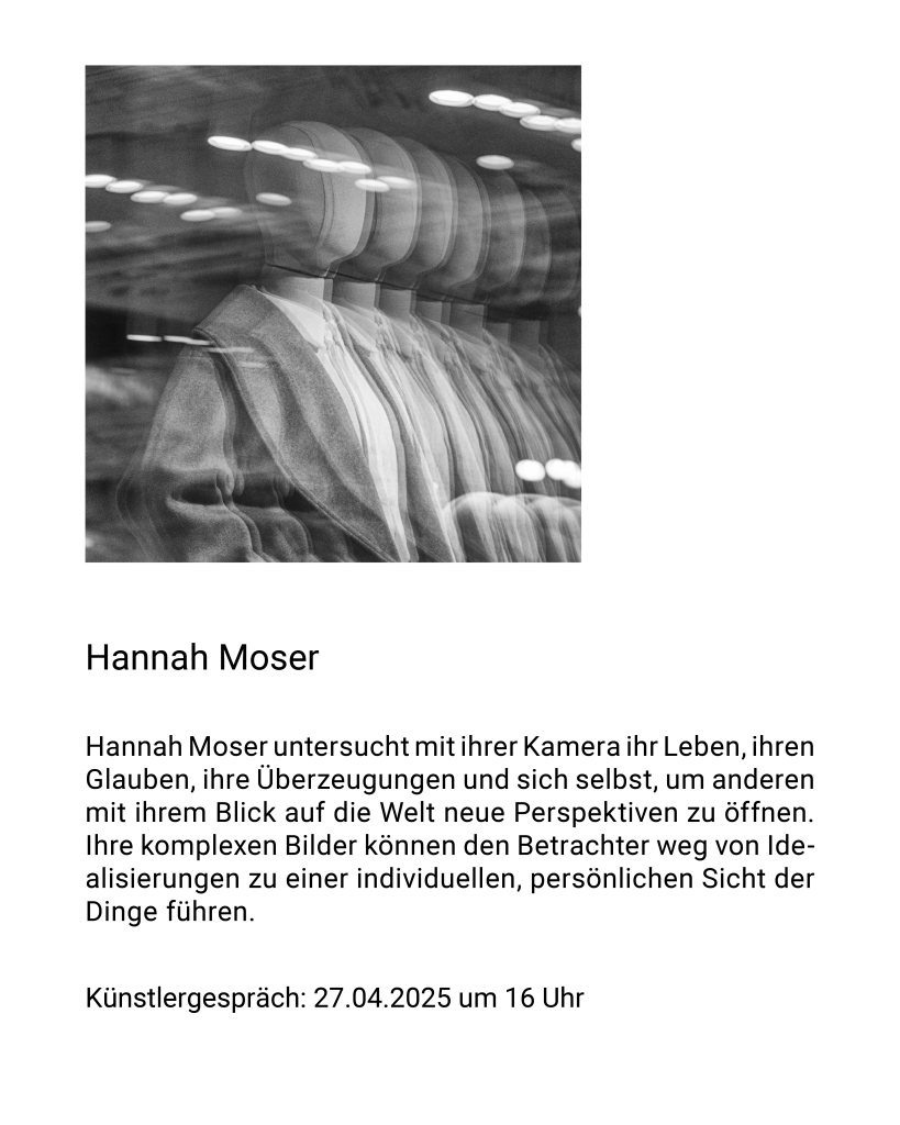 Drei künstlerische Positionen – vermittelt durch unterschiedliche Kommunikationsmedien – treten in einen offenen Metalog über Ordnung und Unordnung, kollektive Prägung und individuelle Entscheidungsfreiheit sowie über Originalität und Verfielfältigung. Die ausgestellten Werke machen im Erkenntnisprozess des Metalogs Muster im Chaos sichtbar. In verschiedenen Medien und Herangehensweisen laden die Arbeiten von Bettina Hachmann, Hannah S. Moser und Ralf Jochen Moser zur Reflexion über innere Bewegungen, gesellschaftliche Strukturen und persönliche Lebensgestaltung ein.